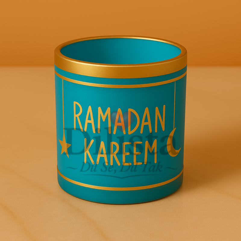 Green Silver Finish Ramadan Candle Jar 200ML – Glass Tea Light Holder