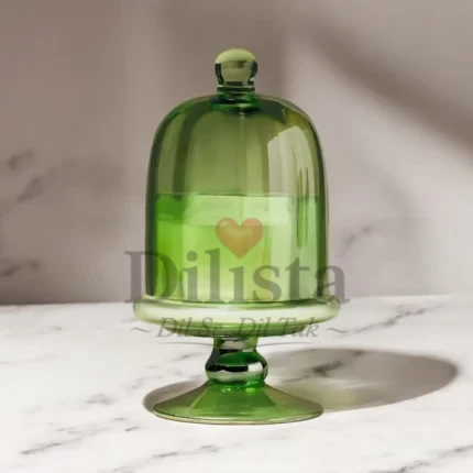Glossy Green Stand Bell Jar for Candles – 200ML Glass Dome