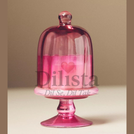 Glossy Pink Stand Bell Jar for Candles – 200ML Glass Dome
