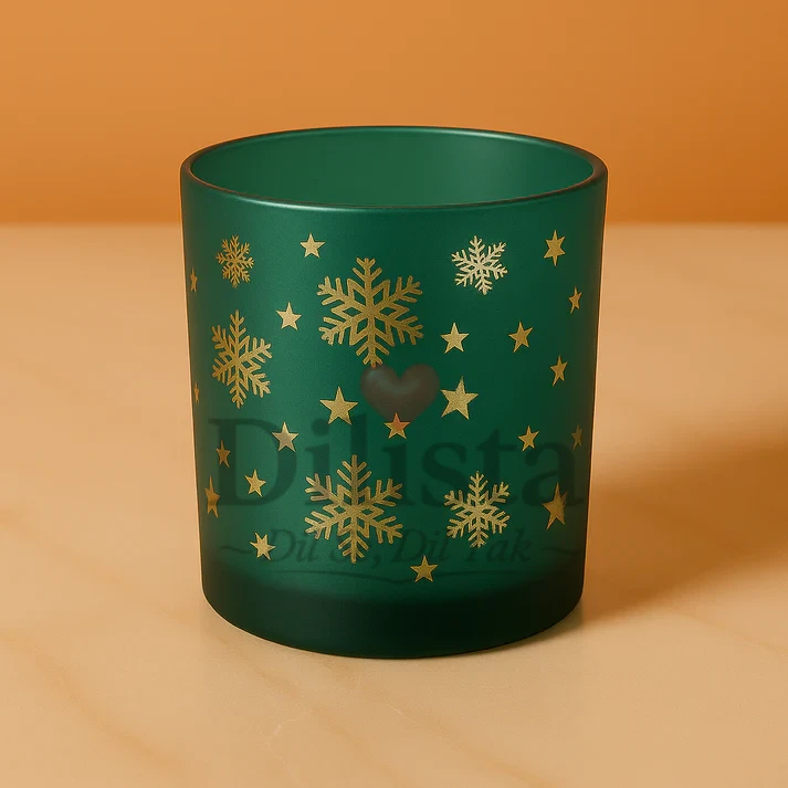 Pack of 50 – Green Christmas Candle Jars with Golden Snowflake Design