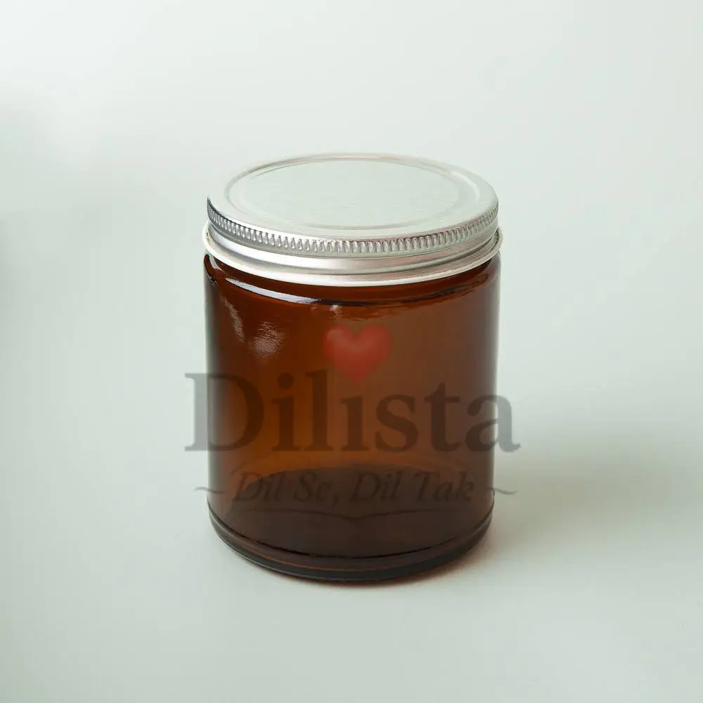 High-quality amber glass jar with airtight lid, ideal for candle making, cosmetic packaging, and kitchen storage. The amber glass helps protect contents from light exposure, making it perfect for candles, creams, powders, spices, and dry food items. Strong, reusable, and suitable for both premium brands and bulk usage.