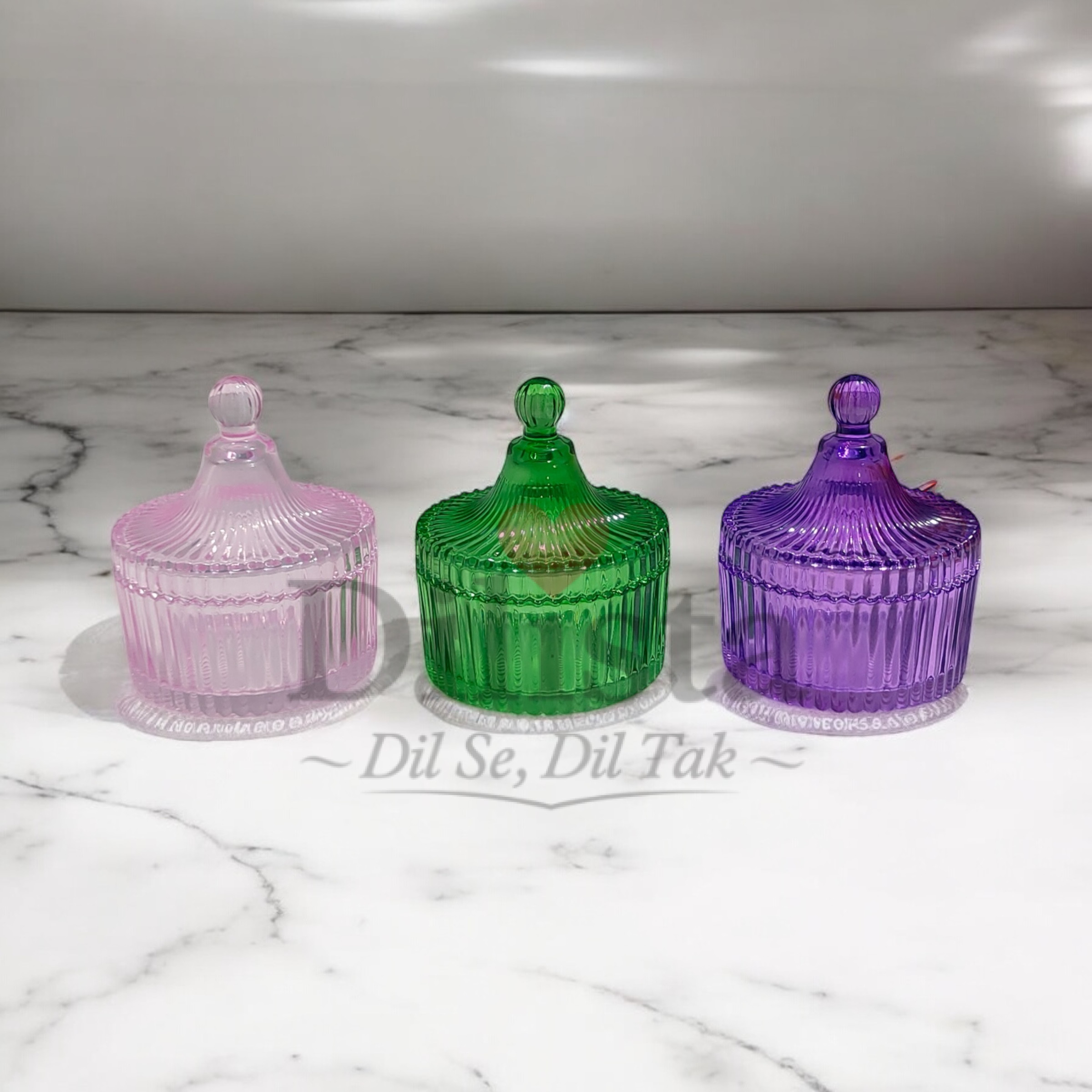 This lining candy jar comes with a glossy finish and vibrant color options, designed to add a premium and eye-catching look to candy storage and display. Available in green, pink, and purple, it is ideal for attractive retail presentation and decorative use.
