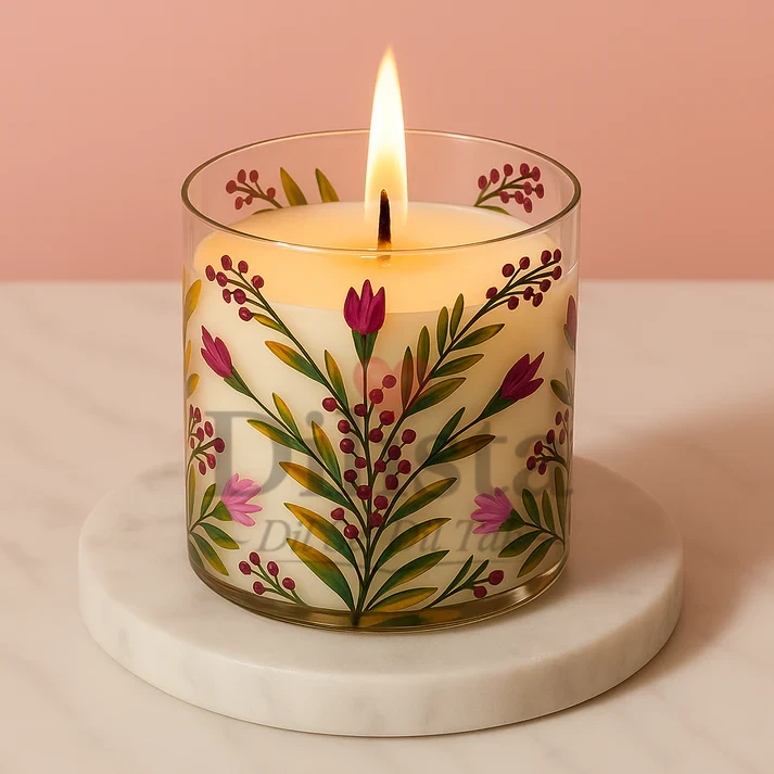 Premium 500 ML transparent glass candle jar featuring elegant hand painted artwork for a unique and premium look. This jar is ideal for luxury candles, home décor candles, festive collections, gifting hampers, and premium candle brands. The wide mouth design ensures smooth candle pouring and even burning, while the hand painting adds a handcrafted, artistic touch—making each piece visually distinctive.