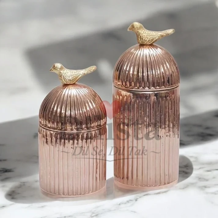✔ 2 Candy Jars – 250ml (Metallic Silver & Rose Gold)