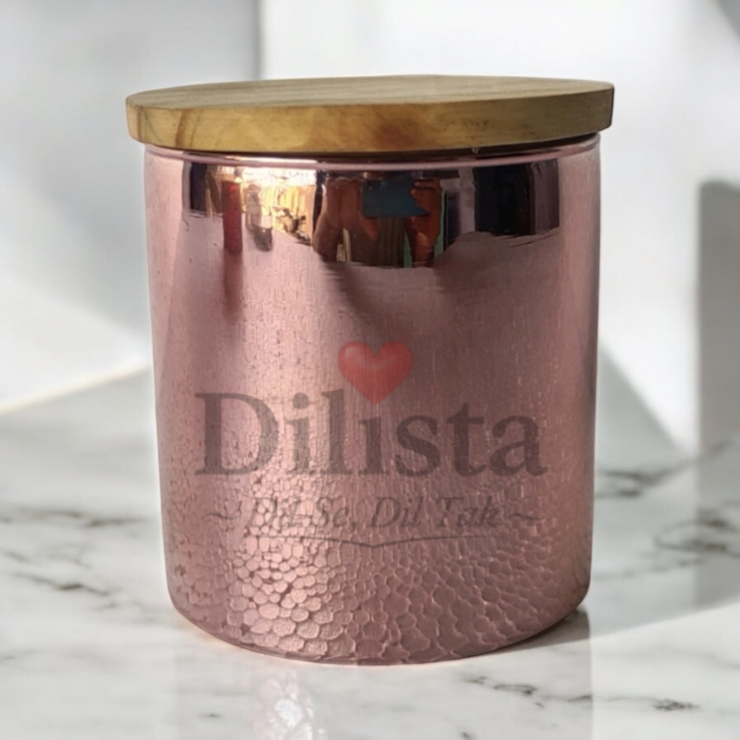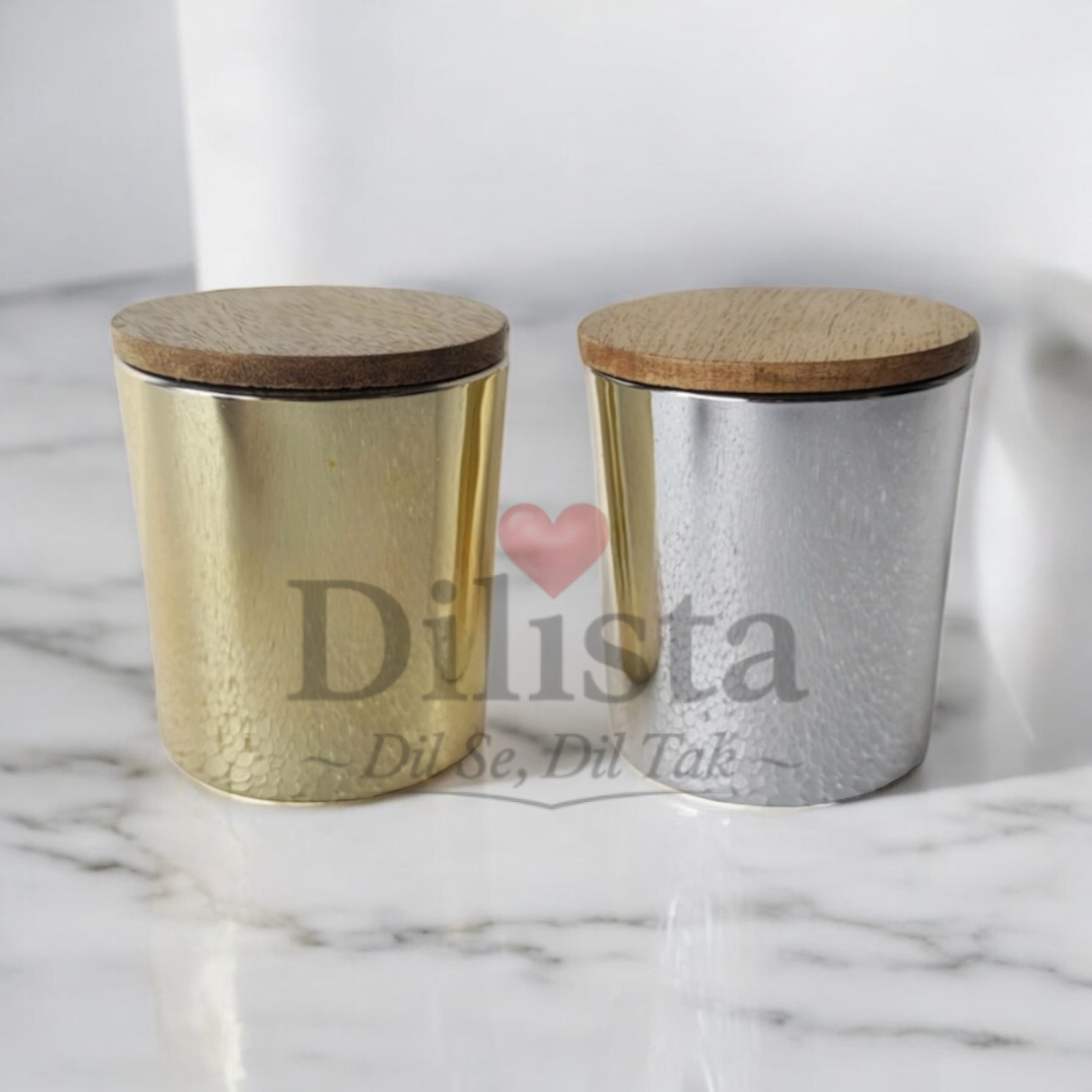 This Metallic Wooden Lid Candle Jar is designed for candle brands that want a rich, elegant, and premium candle presentation. Available in rose gold, golden, and silver metallic finishes, this jar adds a luxury appeal perfect for festive, premium, and gifting candle collections.