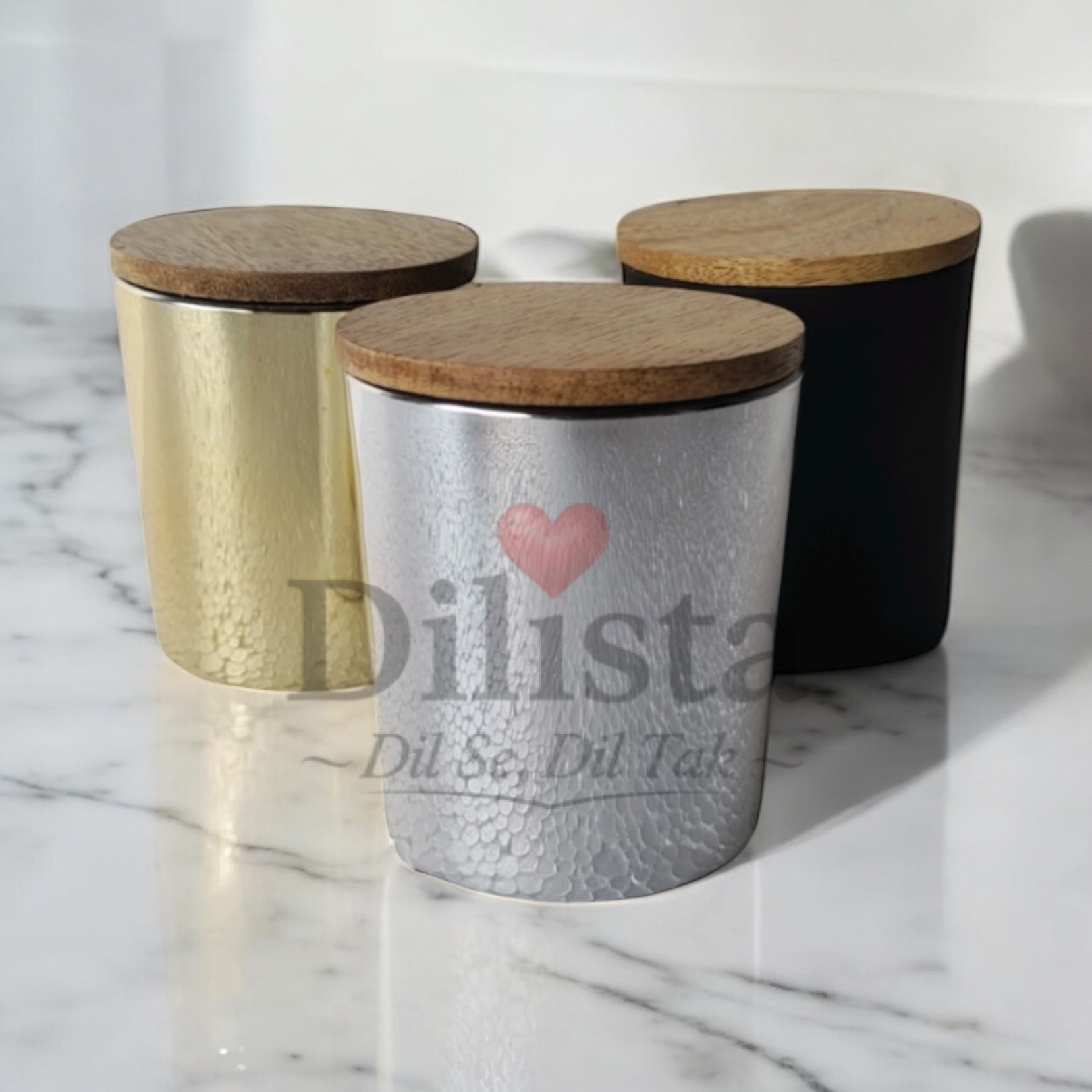 Metallic Wooden Lid Candle Jar 200ML | Rose Gold, Golden & Silver Glass Candle Jar