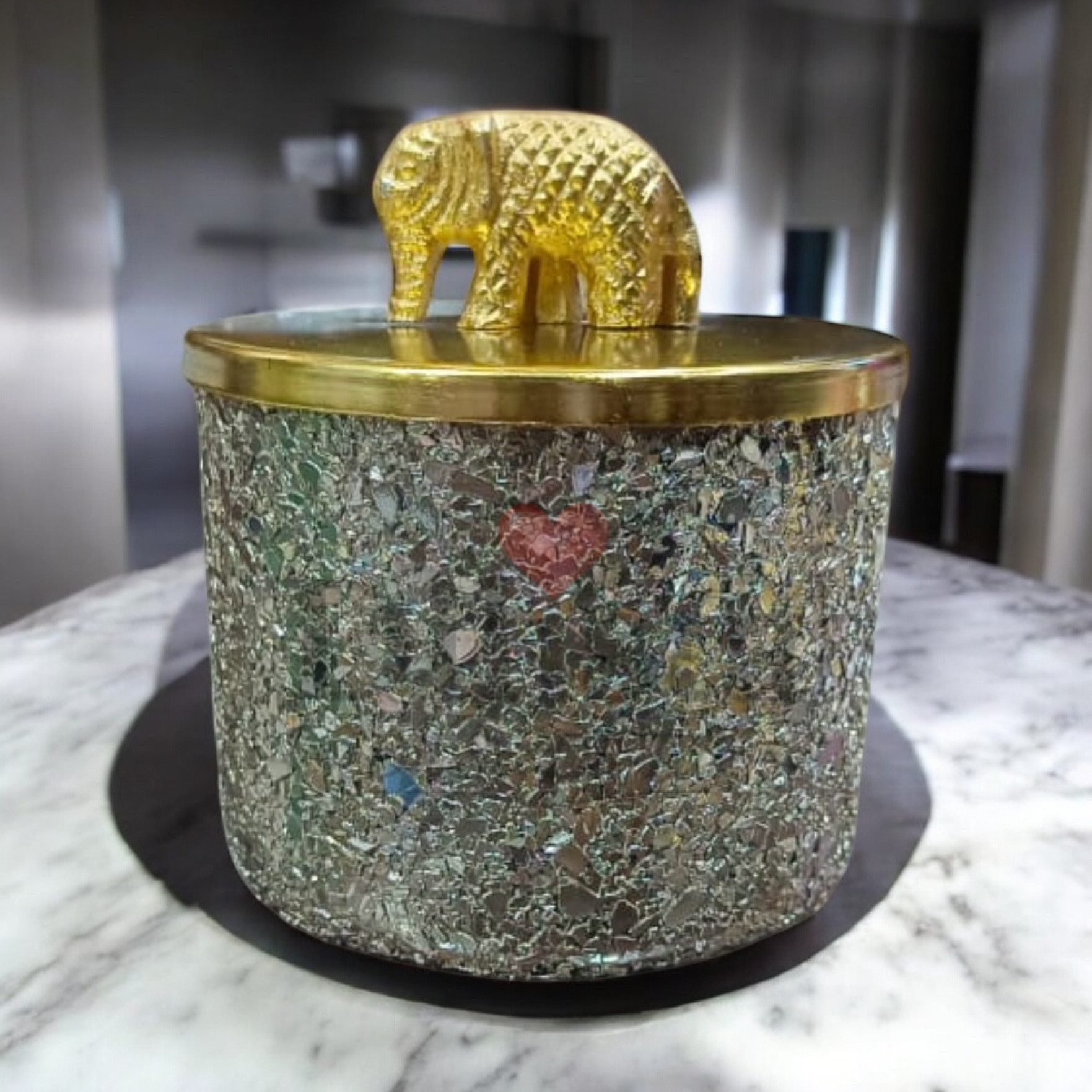 Be the first to review “Silver Crackle Finish Decorative Glass Jar with Metal Lid & Elephant Knob”