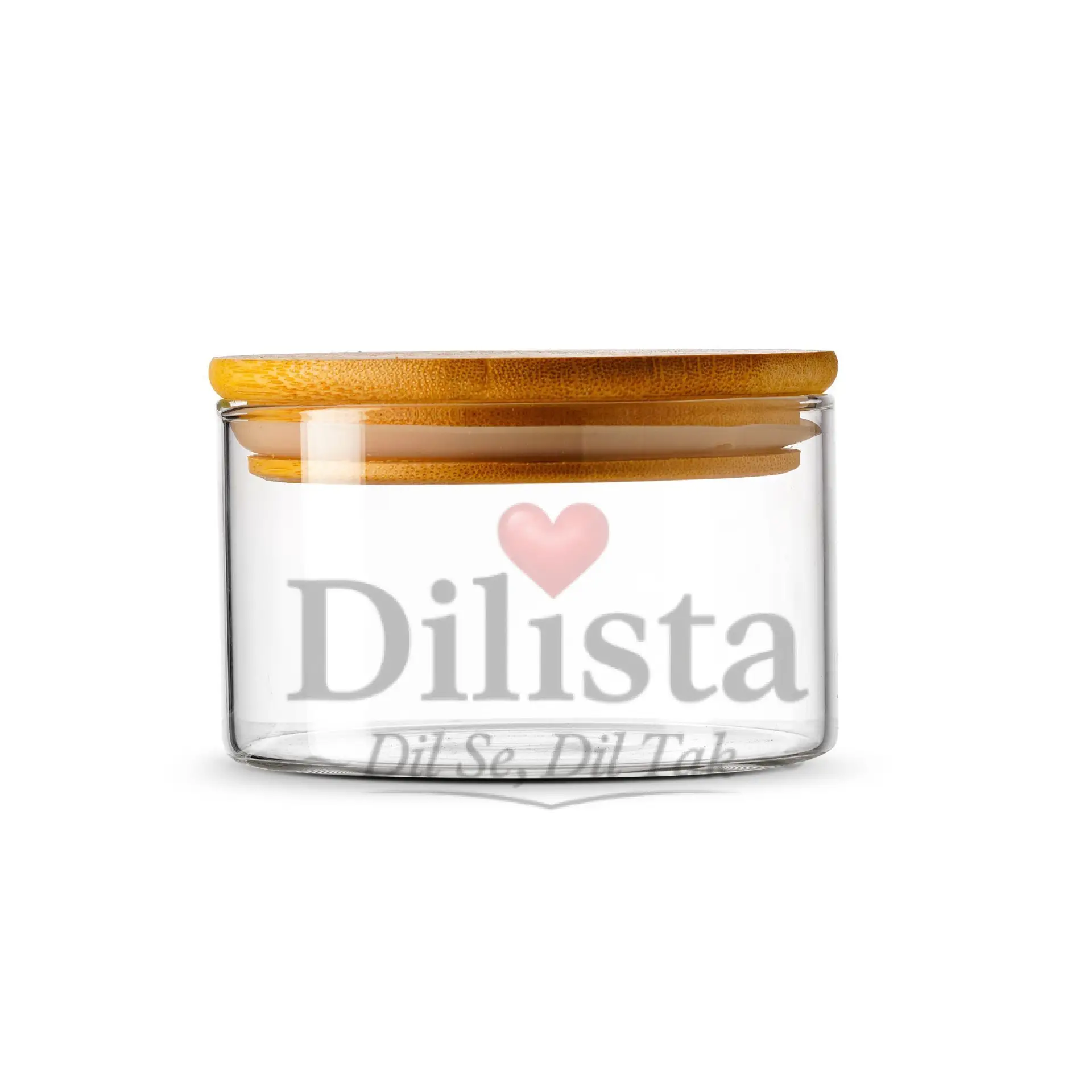 This 350ML transparent glass jar with wooden lid is a premium multipurpose storage solution designed for kitchen storage, dry fruits, spices, coffee, sugar, and candle making.